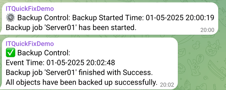 In this article, I’ll show you how to integrate Veeam Backup with Telegram to get real-time notifications directly to your phone or desktop whenever a backup job starts or finishes — whether successful, failed, or with warnings.